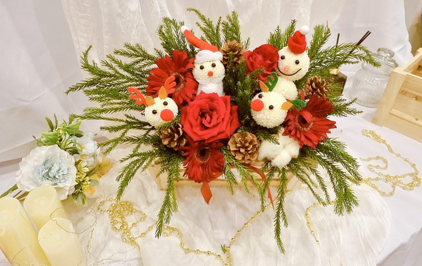 Christmas wonderland with fresh florals and Characters