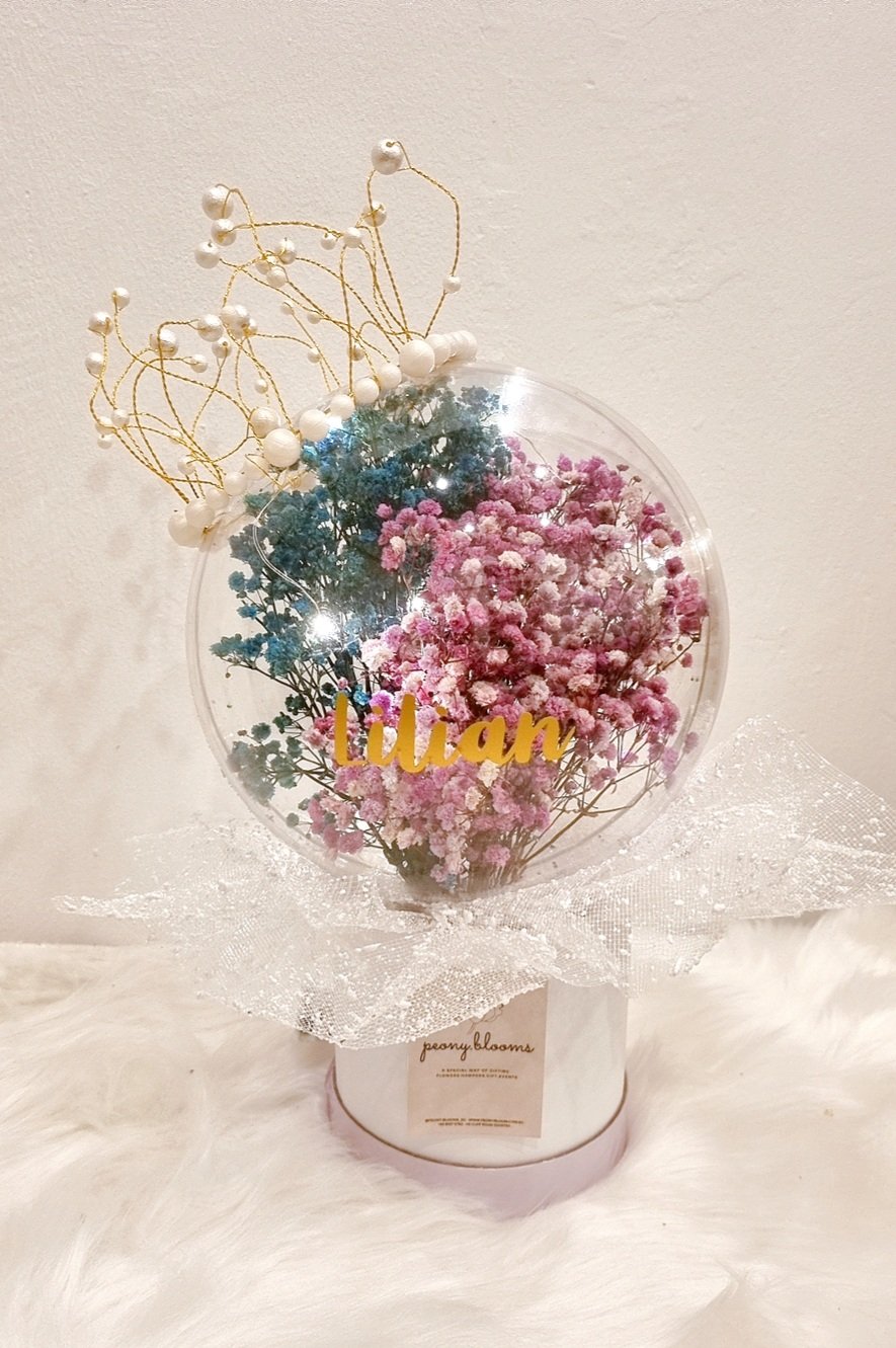 Be the first to review “Customised Acrylic Pink & Blue Baby Breath With Fairy Lights and Crown”