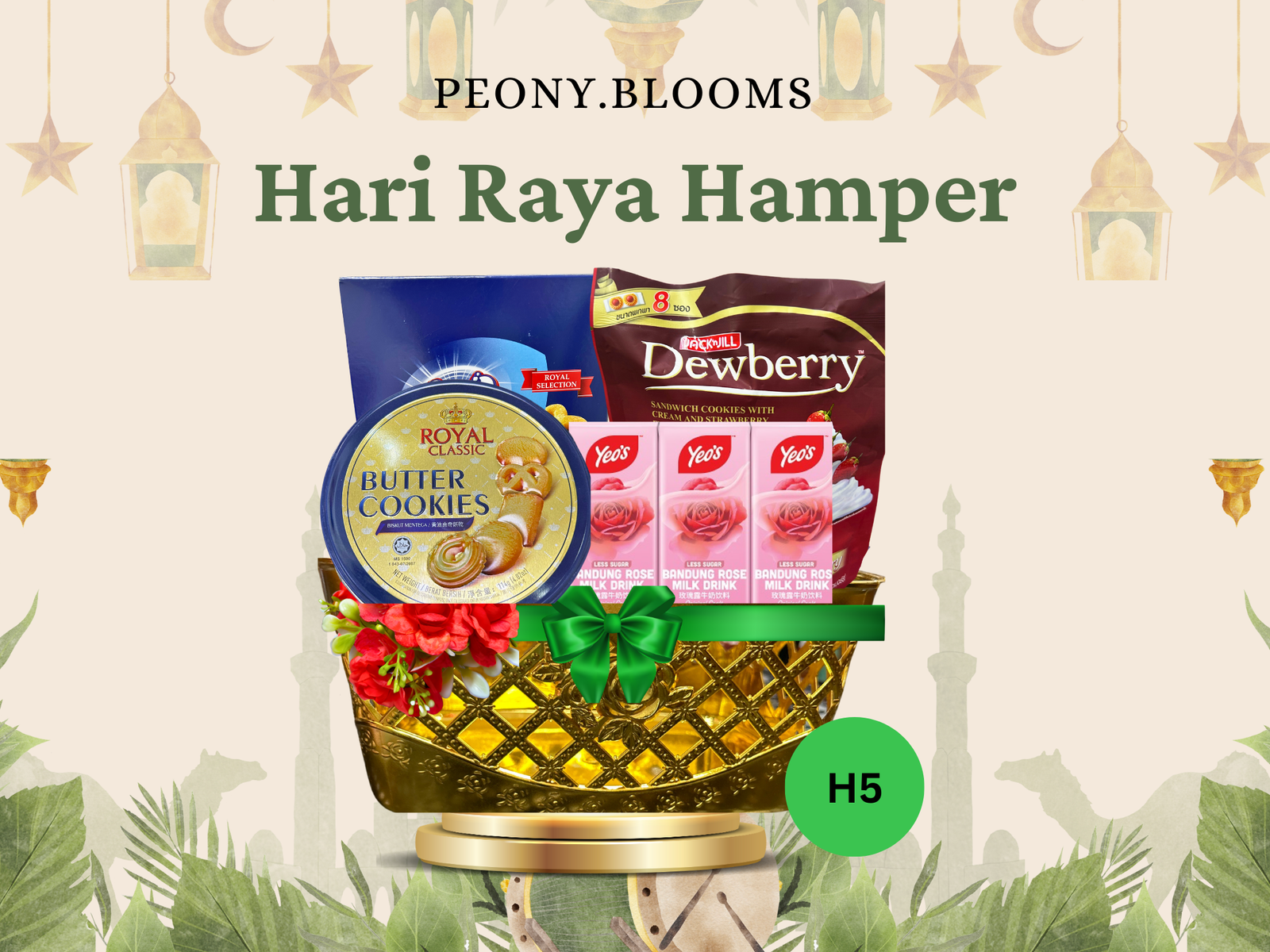 Gift card included. Suitable for gifting. Includes Biscuits, Dewberry, Butter cookies and 3 packets of bandung.