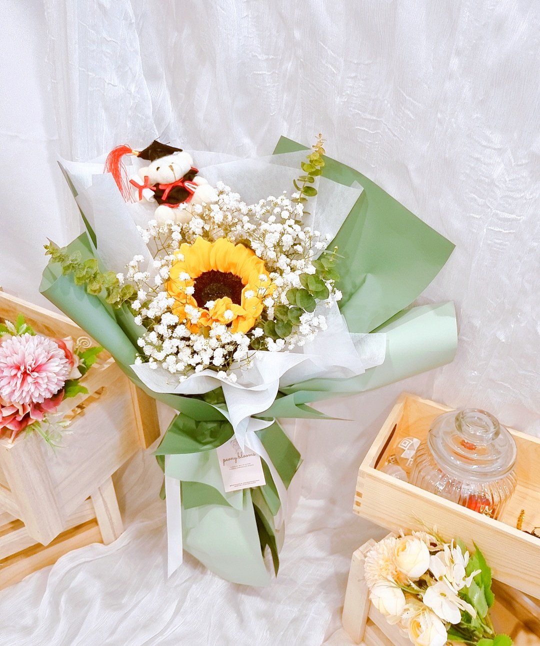 Appx dimension of bouquet : 28cm (W) x 35cm (H)